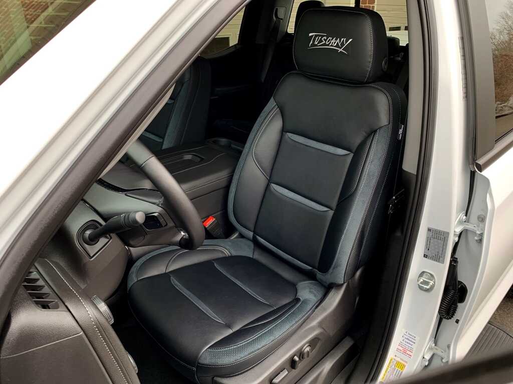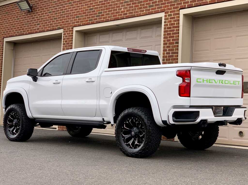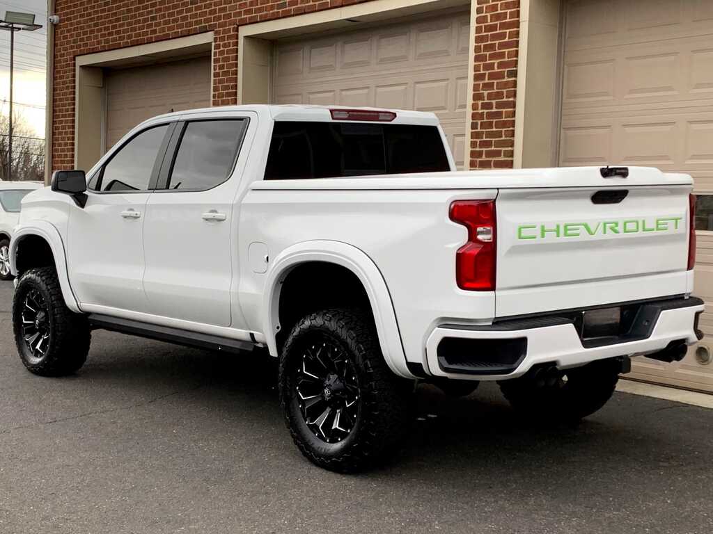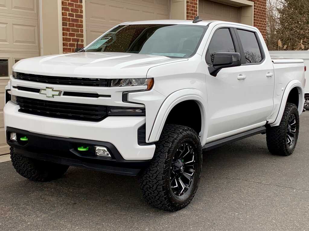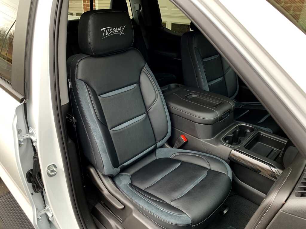 2019 Chevrolet Silverado 4X4 SRT Crew Cab Tuscany ZRX Off Road Edition in Summit White over Jet Black Leather Loaded with Options Such A BDS Suspension System with Exclusive Lateral Stability Bars- 2.0 FOX Rear Shock Package- 20 inch Fuel Custom Wheels- 325 BFG KO2 All Terrain Tires- Tuscany Custom Red Brake Caliper Covers- Custom Tuned Stainless Steel Exhaust System- Stainless Steel Gauge Package- Speedometer Recalibrated By Tuscany- Color Keyed Fender Flares- Power XL Running Boards with Rock Guards & Running Lights- Tuscany Custom Leather Seating- Carbon Fiber Interior Trim Package- Stainless Steel Gauge Package- Tuscany Embroidered Headrests- Deep Tinted Windows- Color Matching Tonneau Cover- Spray In Bed Liner- Dual Zone Climate Control- Heated Seats- Heated Steering Wheel- Power Rear Sliding Window- 8 inch HD Color Touchscreen and Voice Recognition- Sirius XM radio- HD Radio- HD Rear Vision Camera- Bluetooth Audio Streaming- Bose Premium Sound System- Power Sunroof- Skid Plates- Polished Dual Exhaust- Android Auto & Apple Carplay Capable- WiFi Hotspot- Keyless Entry- Push Button Start- Fog Lights- 5.3L V8 Engine- Fully Serviced